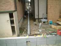 ユンボでバリバリ壊していけばいいので作業自体は難しくないが、水道と下水の配管に気をつけなければならない。